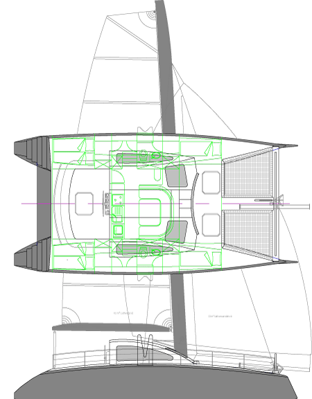 Seegängiger, sportlicher Cruiser-Racer aus Carbon-Fiber- Epoxyd mit asymetrischen Rümpfen, Schwertern und Flügelmast